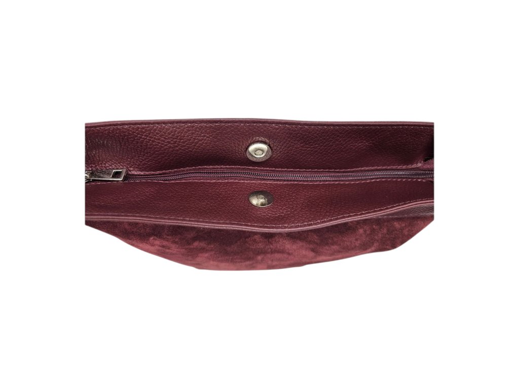 Prostorná kožená taška v kombinaci semiše a kůže, která má kapsu na zip a magnet. Hodí se na nošení jak na rameni, tak i do ruky. Součástí je i přiložený...